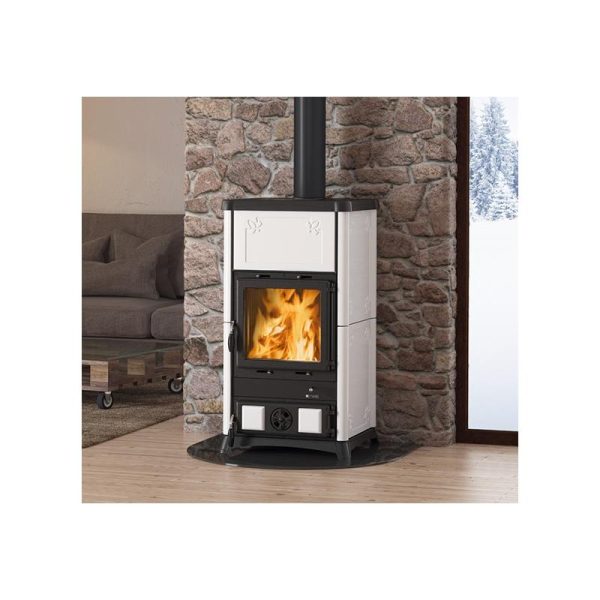 Le poêle à bois Fedora 9.5 kW de la marque La Nordica vous offrira la possibilité de chauffer votre maison jusqu’à 238 m3. Le revêtement de ce modèle de poêle à bois est en fonte émaillée est en faïence ce qui lui permet d’accumuler la chaleur produite et de la restituer sur une plus longue période.